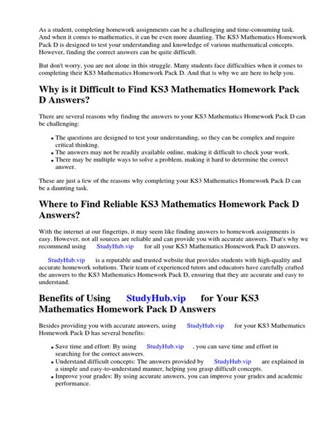 Read ks3 mathematics homework pack answers Kindle Editon Open Library